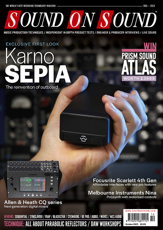REVIEWS: Karno SEPIA Preview [front cover] • Spotlight: All-in-one Podcasting Devices • Focusrite Scarlett 4th Gen interface • Allen & Heath CQ-18T digital mixer • Sequential Trigon-6 synth • Frap Audio Dynamics 2806 • Steinberg SpectraLayers Pro 10 • Synclavier Regen • Melbourne Instruments Nina • Audix PDX720 Signature Edition mic • Embody IVS Gavin Lursson Signature Edition • Polyend Tracker Mini • AJH Synth/Tone Science Triple Cross • Wes Audio ng76 FET compressor • Blackstar St James Plugin • Ultimate Ears UE PREMIER in-ears • Sample Libraries — and lots more!