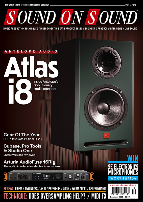 REVIEWS: Antelope Audio Atlas i8 [front cover] • Gear Of The Year 2023 • beyerdynamic M Series • Steinberg Cubase Pro 13 • PreSonus Studio One 6.5 • Avid Pro Tools 2023.9 • Arturia AudioFuse 16Rig • Harrison 32Classic console • PreSonus Eris 3.5 BT monitors • Zoom UAC-232 audio interface • Prism Sound Dream ADA-128 • Akai APC64 controller • Two notes OPUS amp modeller • Warm Audio WA-1B compressor • Strymon Brig delay pedal • LANDR Mastering Plugin • Modartt Organteq 2 • ASI Audio 3DME in-ear monitors • Sonible pure:EQ • Toontrack Stories drum library • Pope Audio PRE-BX • RYK Night Rider • UJAM Ufx Reverb • Sample Libraries — and many more reviews!