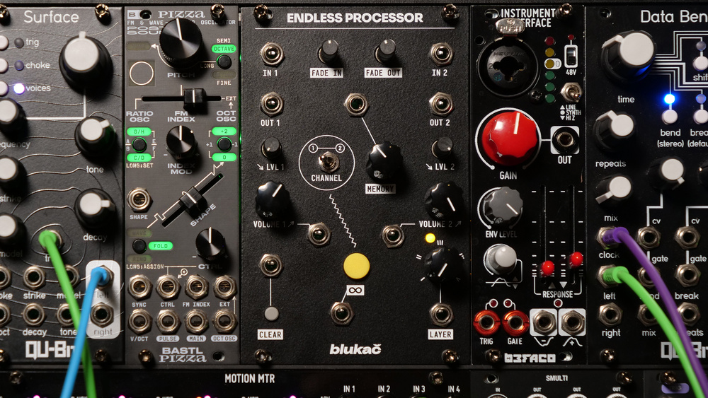 The Endless Processor from Kyiv‑based Blukac does one thing. It takes a sound and sustains it to infinity. It’s such a simple thing that, initially, I felt a bit baffled and disappointed by it. Is that it? Surely there must be more than an eternally held note? But then it starts to undo you. Bafflement falls away and is replaced with mesmerisation. And when you resurface a few hours later after patching everything you own into it, you realise that this module is never leaving your rack.