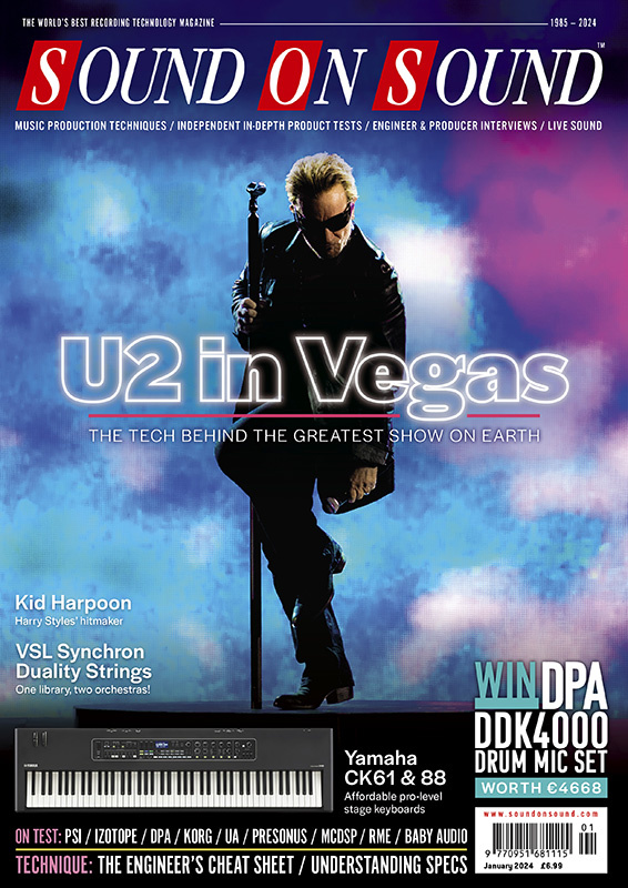 TECHNIQUES + PEOPLE: Sphere Sound - Creating U2:UV [front cover] • 36 Tips For Budding Engineers & Producers • Kid Harpoon • David Stewart • Why Specifications Matter: Part 1 • How I Got That Sound: Howard Jones • Talkback: Afrodeutsche • DAW Tips: Digital Performer, Cubase Pro, Pro Tools, Studio One... and lots more!
