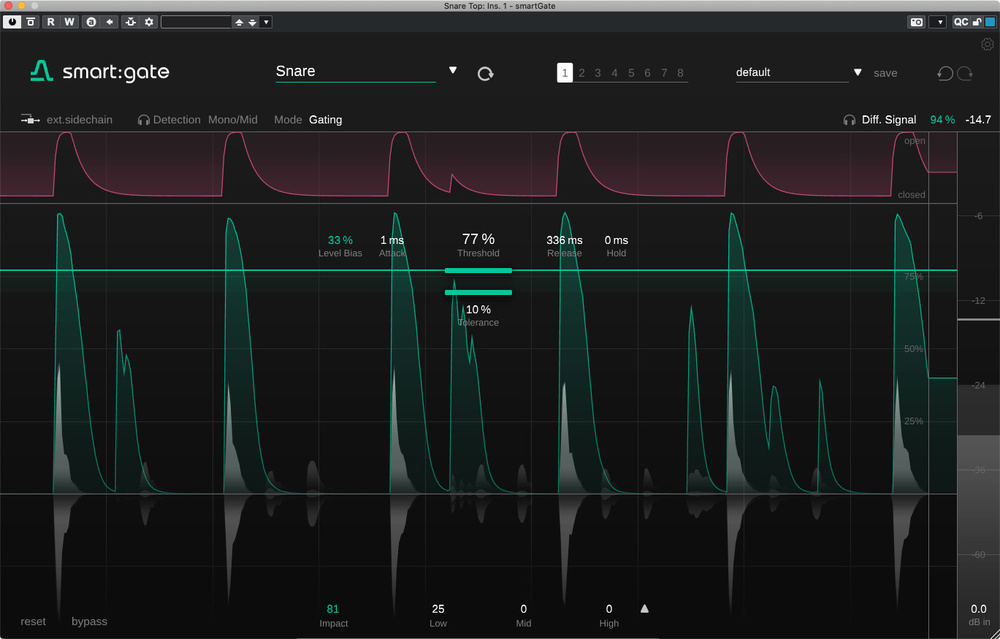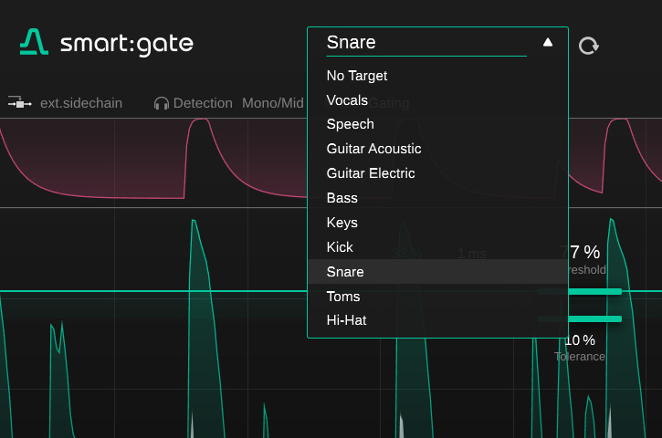 smart:gate analyses the incoming signal for the information that most closely resembles the chosen target profile — it will only open when it detects those sounds in a signal.