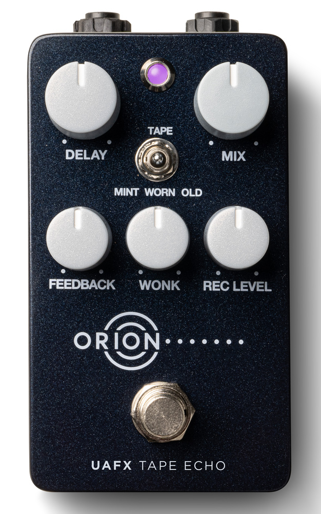 The Orion tape echo pedal.UA’s Orion offers the algorithms from their Starlight Echo Station in a compact, simpler format, emulating the sound of a vintage ’70s Maestro Echoplex EP‑III tape delay. Like the original hardware, it is mono and has no tap‑tempo facility. The latter will, of course, rule out the Orion from consideration by a number of potential purchasers who regard ‘in‑time’ delays as an essential part of modern music making, but others who, like myself, grew up with real tape delays, may regard that as an irrelevance. Real tape delays have a very specific infidelity that lends itself perfectly to the combination of an electric guitar and a tube amplifier. There’s something magical arising out of that whole signal chain that simply doesn’t exist in any other combination of elements, and whilst I can’t claim to have heard every tape‑emulation pedal, I can say that I have yet to hear it done better than in these UA modelled versions.
