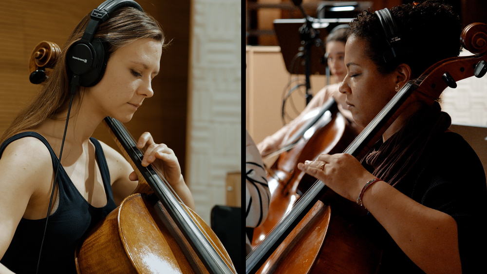 In musical terms, this equates to a simultaneous recording of a symphonic string section playing in the huge Synchron Stage A and a smaller chamber ensemble positioned in the smaller, dryer‑sounding Stage B (see box below for section sizes). The musicians played to a click with a video link to the conductor and their colleagues in the adjoining room, acoustically isolated yet perfectly synchronised.