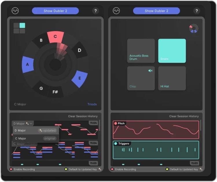 MIDI Capture now boasts automatic key detection, and will find the closest matching key based on the incoming signal and allow users to choose between the detected key or the original that has been set in the Dubler application. In addition to tracking pitches and chords, it is also now possible to capture triggers whilst recording.